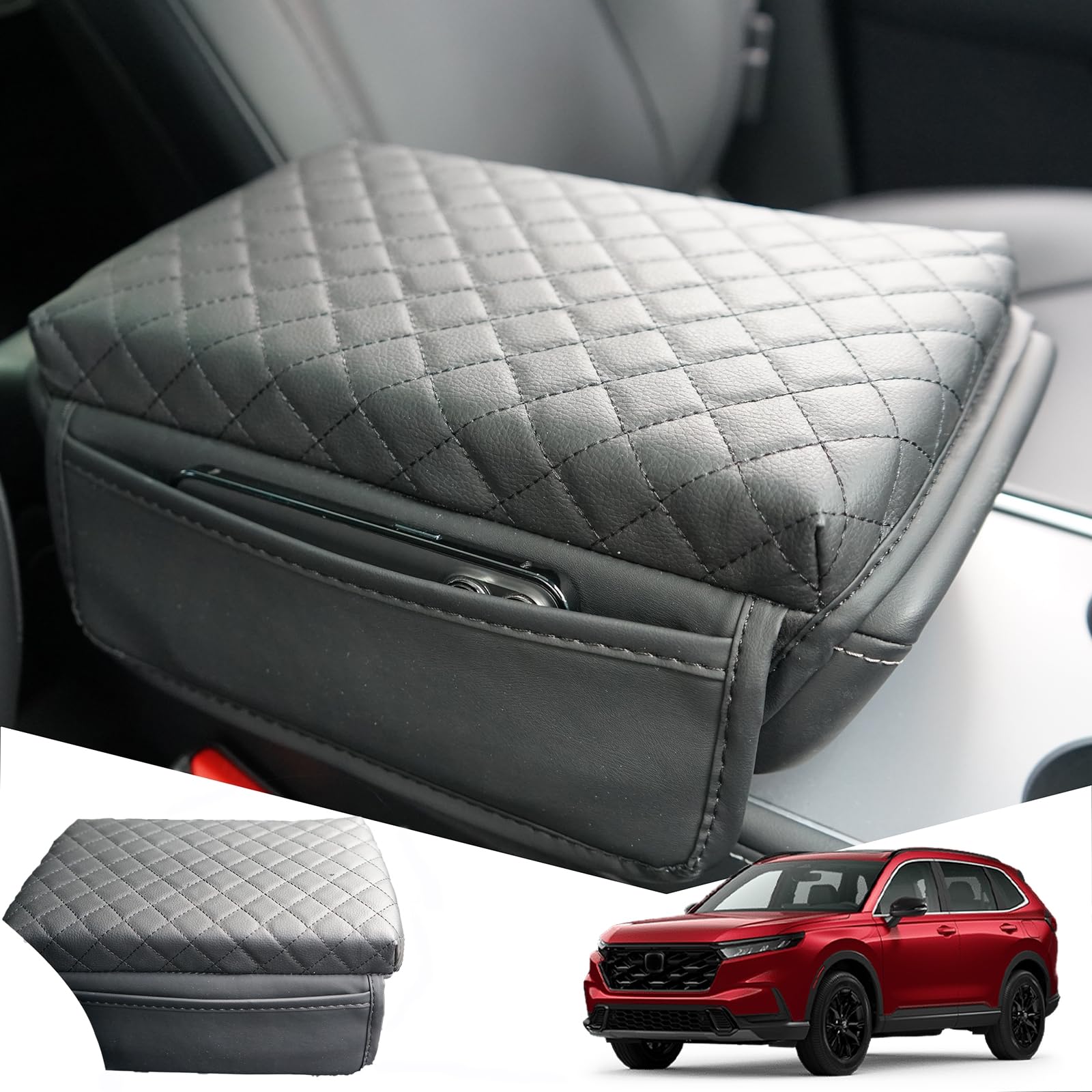 2025 New Car Center Console Cover for Honda CRV 2023-2025, Black Leather Car Armrest Cover Cushion with 2 Storage Bags for Honda CRV Car Accessories 2025 2024 2023